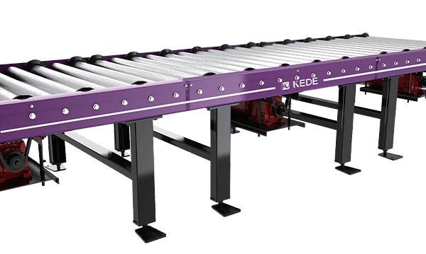 一般與輥筒輸送機配合使用,實現(xiàn)貨物輸送方向的90度轉(zhuǎn)變。