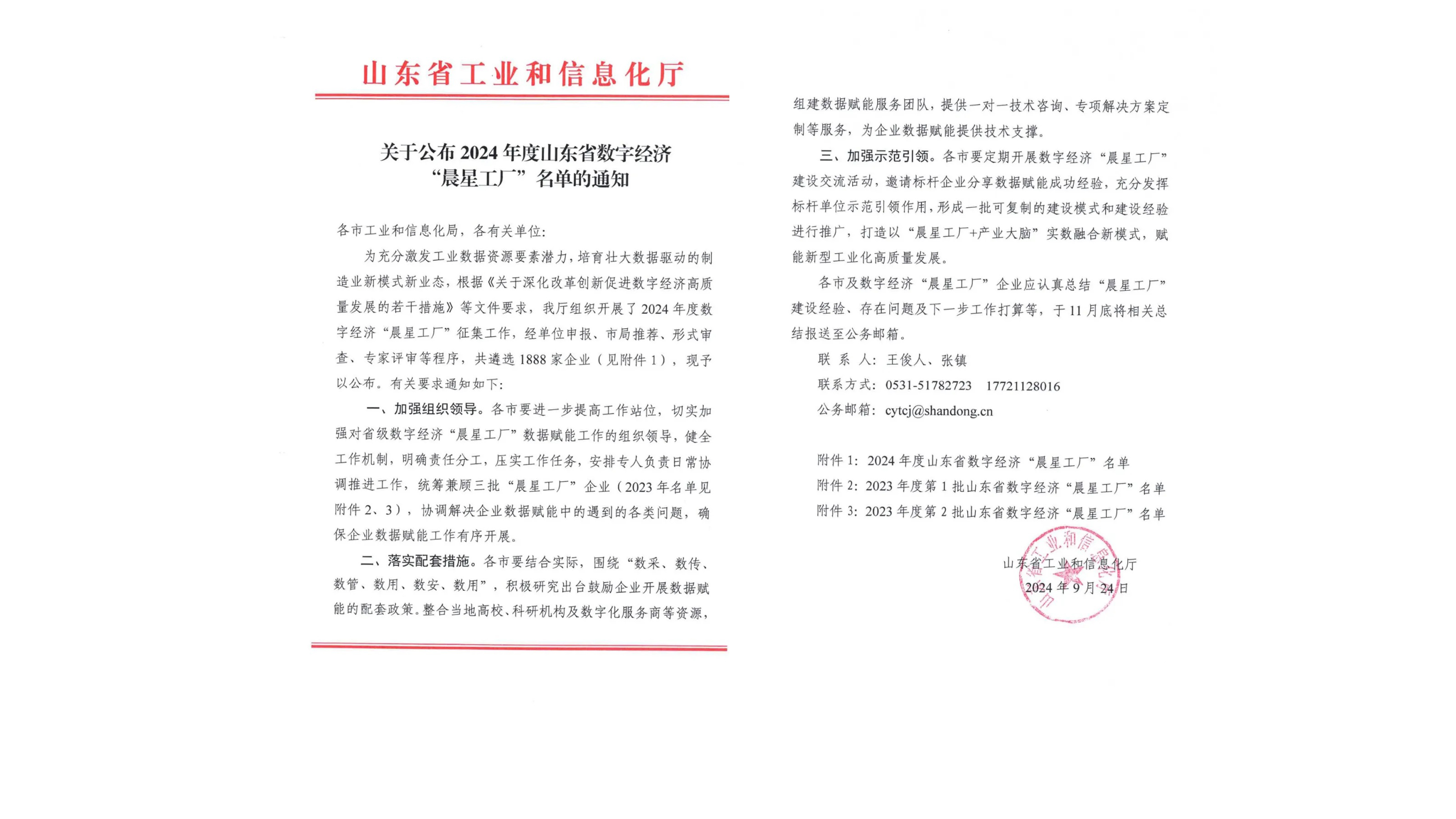 喜報!科德智能入選2024年度山東省數字經濟“晨星工廠“