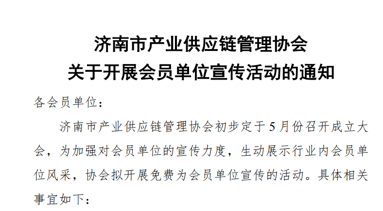 【協會信息】濟南市產業供應鏈管理協會關于開展會員單位宣傳活動的通知