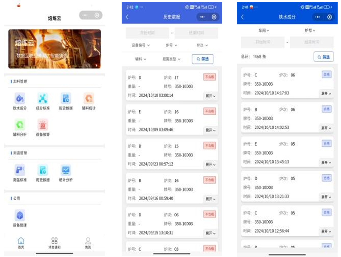 管理人員足不出戶即可對現場設備進行管理、工人加料結果管理和設備狀態異常管理。支持根據年/月/日/爐號進行歷史數據查詢與統計,實現產品質量100%追溯。