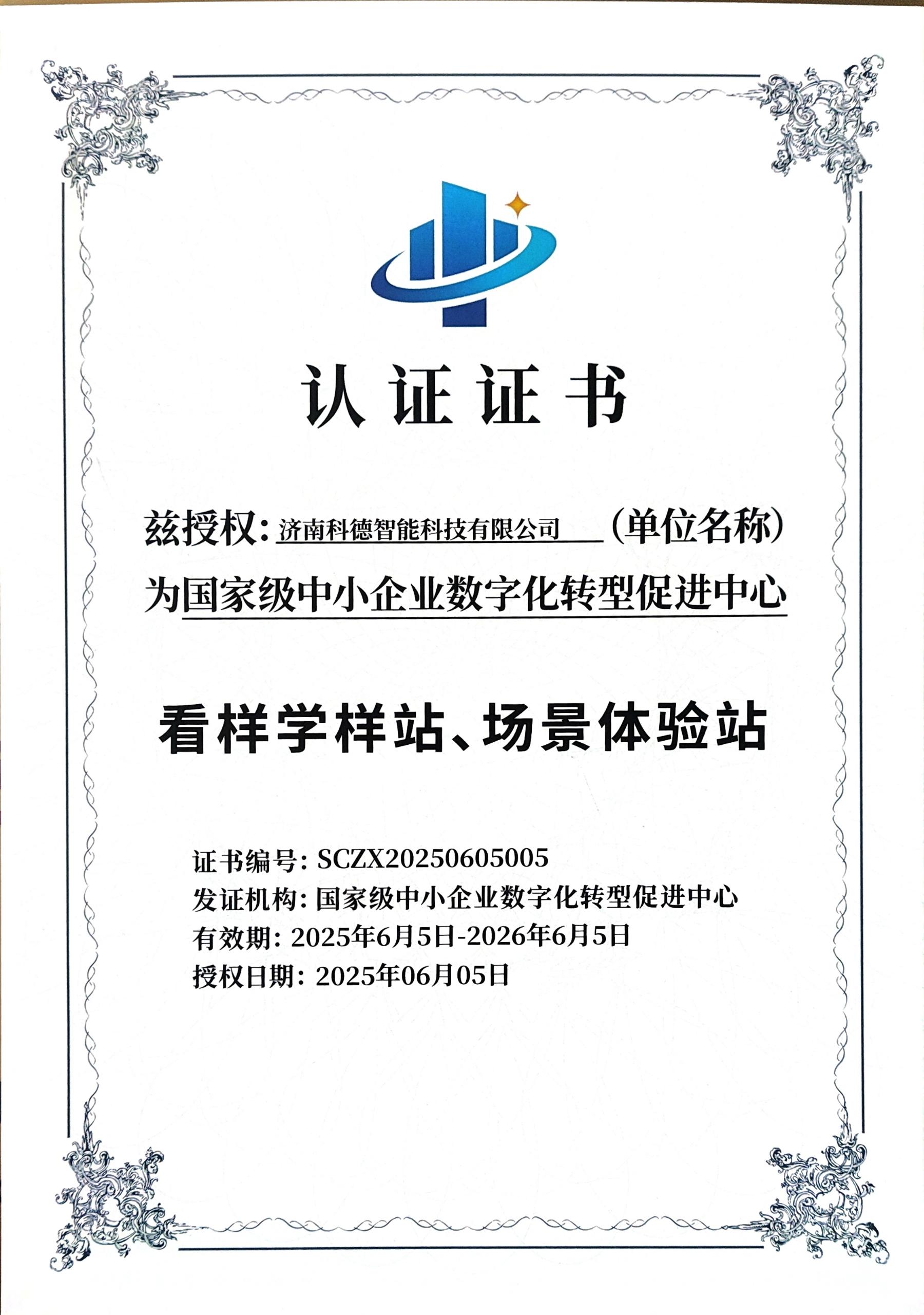2025年6月,濟南科德智能科技有限公司被授權為國家級中小企業數字化轉型促進中心“看樣學樣站” “場景體驗站”。