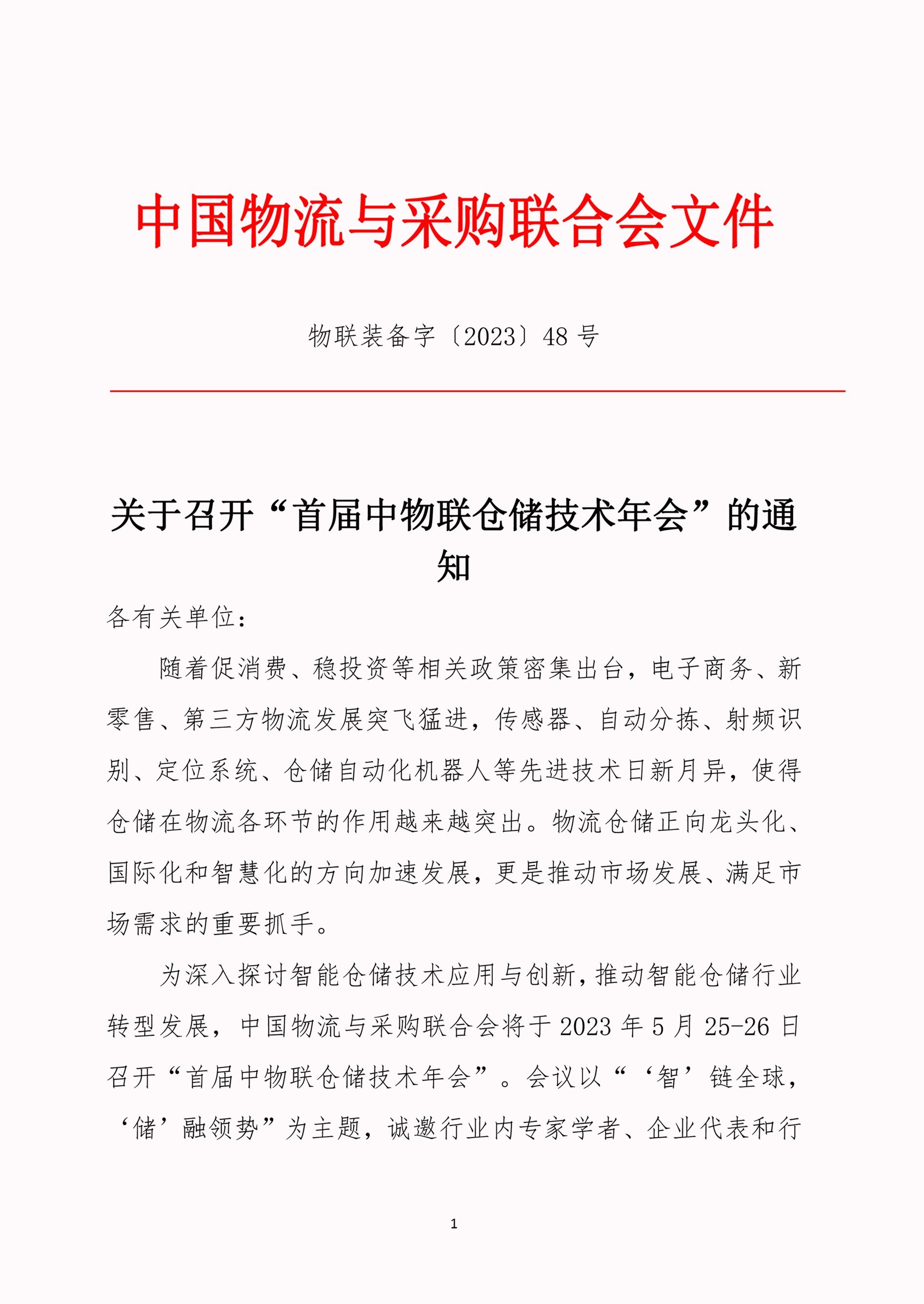 【協會活動】關于召開“首屆中物聯倉儲技術年會” 的通知