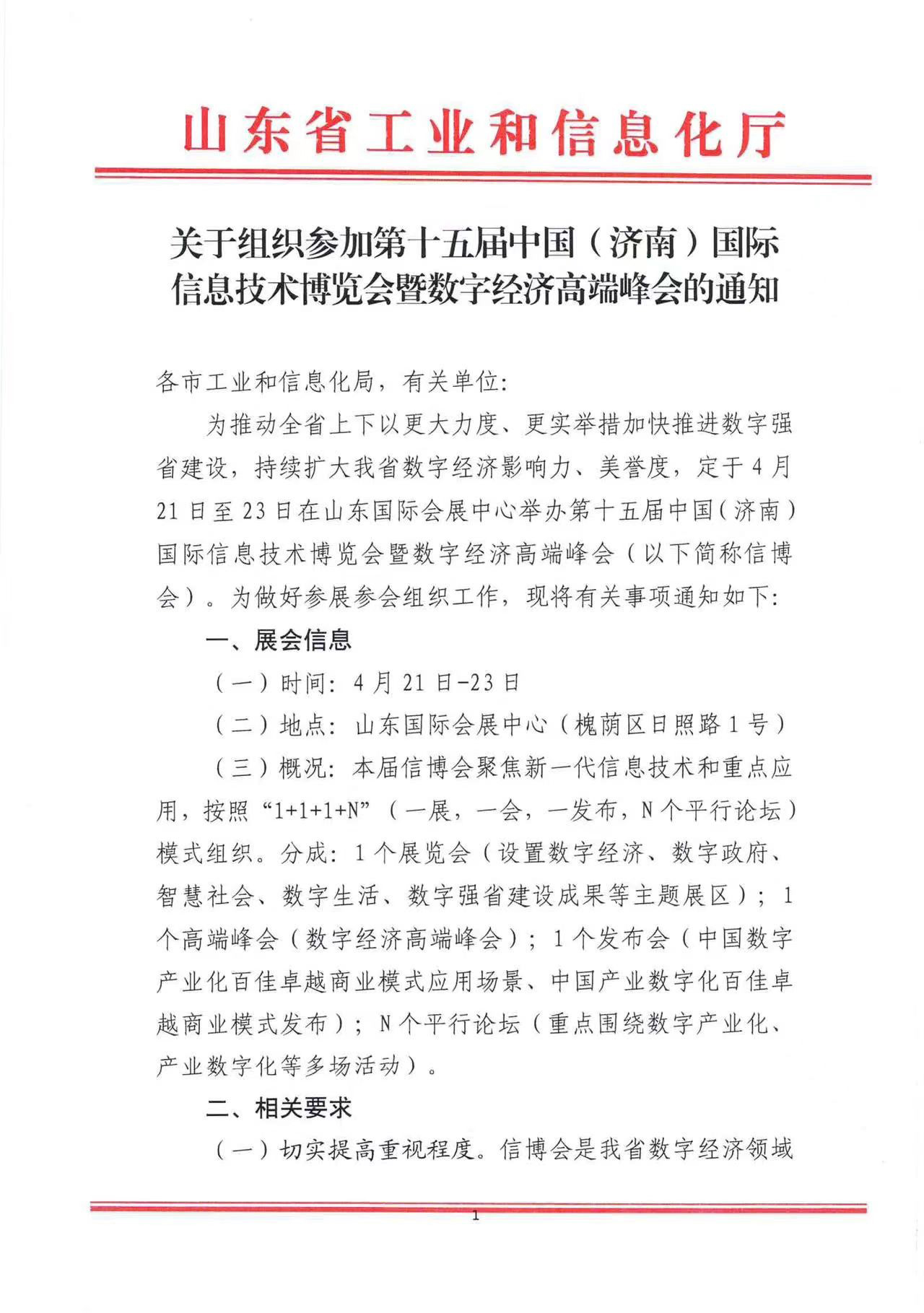 【協(xié)會信息】關(guān)于組織參加第十五屆中國(濟南)國際信息技術(shù)博覽會暨數(shù)字經(jīng)濟高端峰會的通知