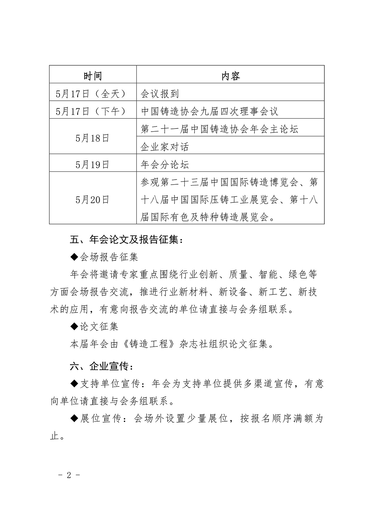 【協會活動】關于召開“第二十一屆中國鑄造協會年會”的預通知